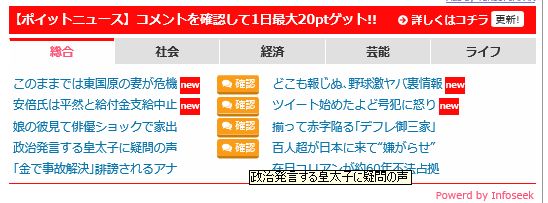 ポイントタウンのサイト内に”おしゃべり掲示板ポイットニュース”というものがあります。ニュースを読むとポイントが最大20pts獲得できます。