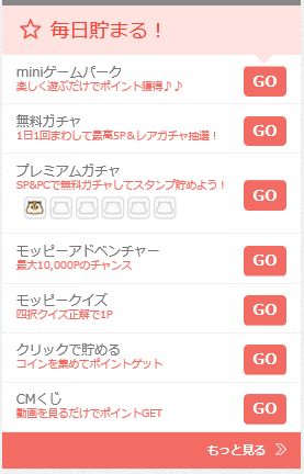 毎日貯まるという項目があります。一番下の”もっと見る”をクリックすると