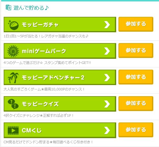 モッピーではゲームで楽しく遊んでポイントを貯めることができます。