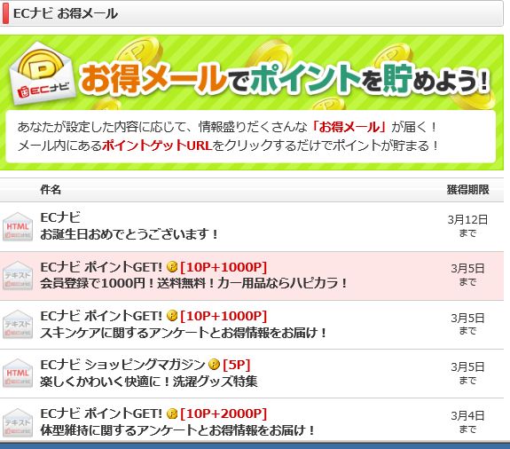 この3つをやっておけばメールだけでもポイントがたくさんもらえます。