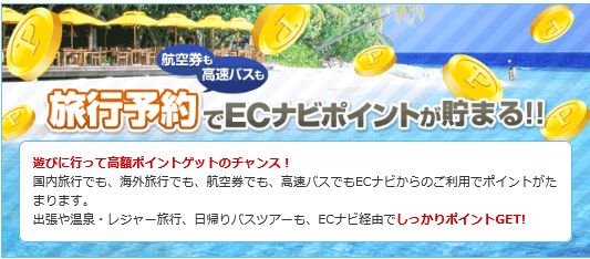 ECナビから旅行予約することで高額ポイントがゲットできるチャンスが広がります。