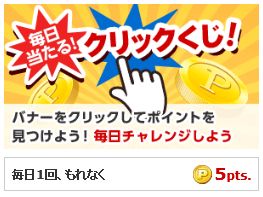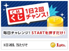 1日2回参加できるクリックくじです。スタートボタンを押すとルーレットが回りあたるとポイントがもらえます。誰でも簡単に参加することができます。