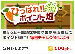 野菜や果物をUFOキャッチャーで取る簡単ゲームです。最大100pt獲得することができます。