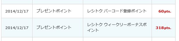 レシートで貯める『レシトク』~ECナビ ECナビ 2014年12月20日 ECナビには他のポイントサイトにはないオンリーワンの ポイント獲得のメニューがあります! それは・・・ 『トクする家計簿アプリ レシトク』 というスマートフォン用アプリがあるのです。 レシトクとは・・・ 店舗で購入したレシートをスマートフォンのカメラで撮影して バーコードの登録をかけるとポイントがもらえるというものです。 >>レシトクの使い方はこちら☆~レシート撮影でポイント獲得 私もレシトクを使っています。 方法はとても簡単です。 レシトクのアプリをスマートフォンにダウンロードします。 もちろんダウンロード・各機能無料で利用できます! スマートフォンのGogle playやApp Storeで 『レシトク』と検索して無料でダウンロードしてみてください! (iOS,Adroid対応) もちろんECナビに会員登録していなければ利用できませんのでまだECナビに登録を済ませていない方は登録を行ってくださいね! ECナビの登録が済んでいない方はここから 普段スーパーやコンビニで買い物をした時にもらうレシート。 これをアプリを起動してスマホのカメラで撮影します。 カメラで読み取ったレシートは自動で商品名と金額が読み込まれ 家計簿としてデーターを保存してくれます。 そして、買った商品のバーコードを撮影し、登録します。 ※1バーコード登録あたり 5ポイント獲得 例 3バーコード登録すれば 15ポイント獲得 そしてデータを送信します。 そうするとバーコードを登録した分のポイントが獲得できます。 普通に買い物をしただけなのにポイントGETできるなんて とってもお得ですよね♪ でも、レシートを撮影してポイントをもらえるってなぜ?と思いますよね。悪いことに使われているんじゃないか???と、私も不安でしたが、登録したレシートはこのようなことに利用されているようです。 ☆レシトクに登録した買い物データは、統計データとして、企業や団体のマーケティングや商品開発に利用されることもあるそうです。もちろん、レシートから個人を特定されることはありませんので安心して利用することができます。 (レシトクは株式会社ボーダーズが提供しているアプリだそうです) そしてレシトクの特徴は利用特典の内容がとても充実しているのでポイントをGETしやすいのです。 1.初回利用ボーナスポイント 初めてレシトクを利用でお買い物データを登録するとボーナスポイントとして500ポイント獲得できます。 2.ウイークリーボーナスポイント お買い物データを登録した方を対象に、毎週500万ポイントを山分け! ※毎月ではなく 毎週です!! ↓実際に私がもらったある週のウイークリーボーナスポイントです! 上の段がバーコードを登録してもらったポイントで 下がウイークリーボーナスポイントです! 318ポイント獲得とは結構大きい獲得数です!! 毎週数字は変わると思いますがコツコツレシートを登録していくとあっという間にポイントが貯まっていきます。 買い物の後にレシートを撮影して、バーコードを登録・・・ ちょっと面倒だと感じるときもありますが、実際やってみると、レシートを自動で文字化してくれるのでほとんど手入力がありません。 (時々文字化けして手入力の時もありますが) もちろん獲得したポイントはECナビのポイントとして加算されますのでポイントを管理しやすいです! 私も実際レシトクを使い始めてからどんどポイントが加算されていることを実感します。それと一緒に支出も見えてくるのでレシトクを重宝しています。 ECナビでポイントを多くゲットしたいならばレシトクはやらなきゃ損です! [0回]
